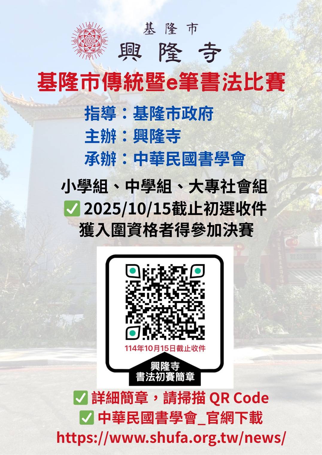 基隆市興隆寺「基隆市傳統暨e筆書法比賽」相關訊息